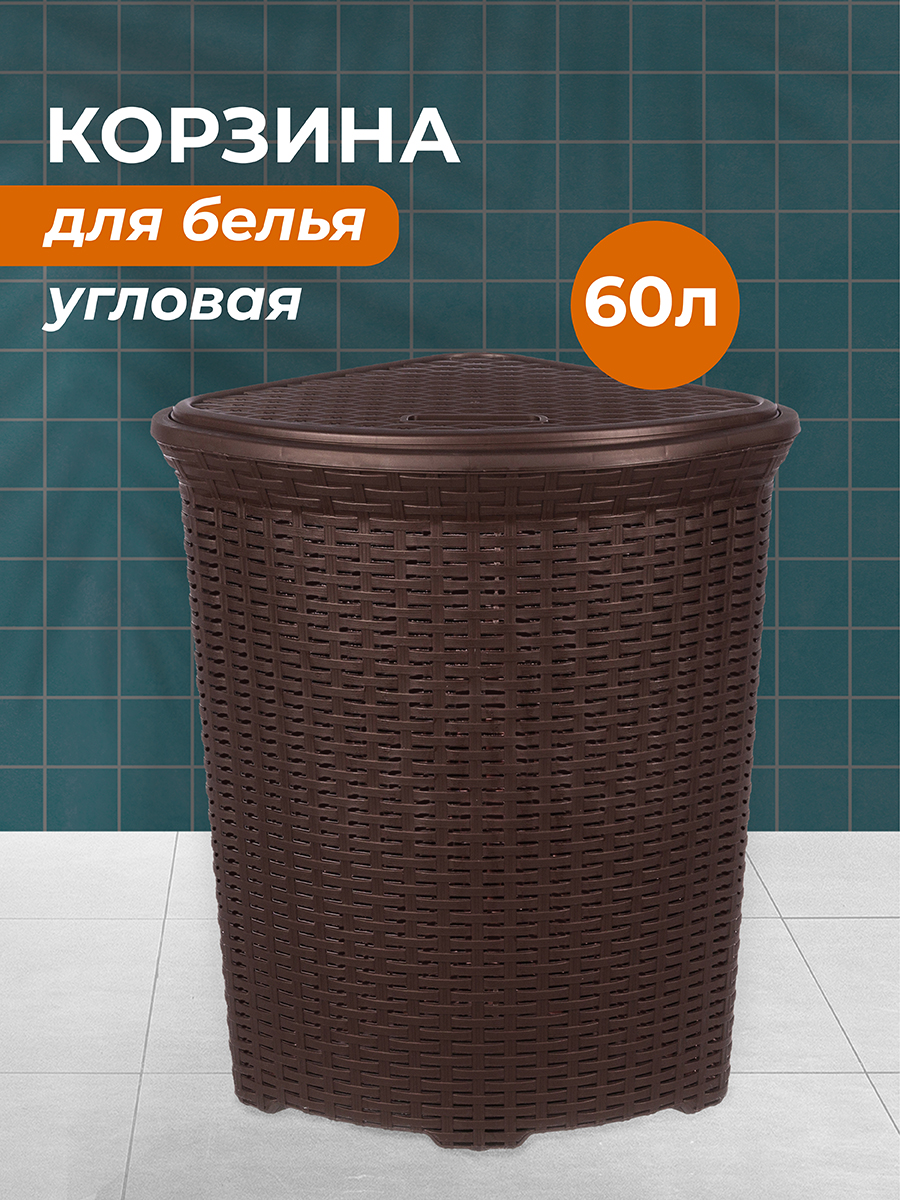 Купите Корзина д/белья с крышкой 60 л РОТАНГ коричневая УГЛОВАЯ в Азнакаево по цене 1041.5 рублей оформив заявку на сайте aznakaevo.stg116.com компании СантехГрад с доставкой или самовывозом. Вы можете позвонить по телефонам +7 (905) 025-91-75 или +7 (906) 120-80-49, для уточненния деталей заказа.